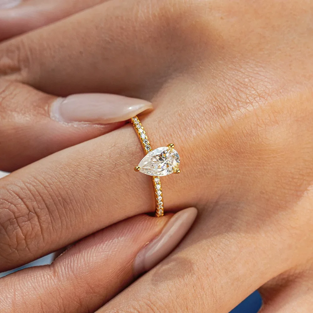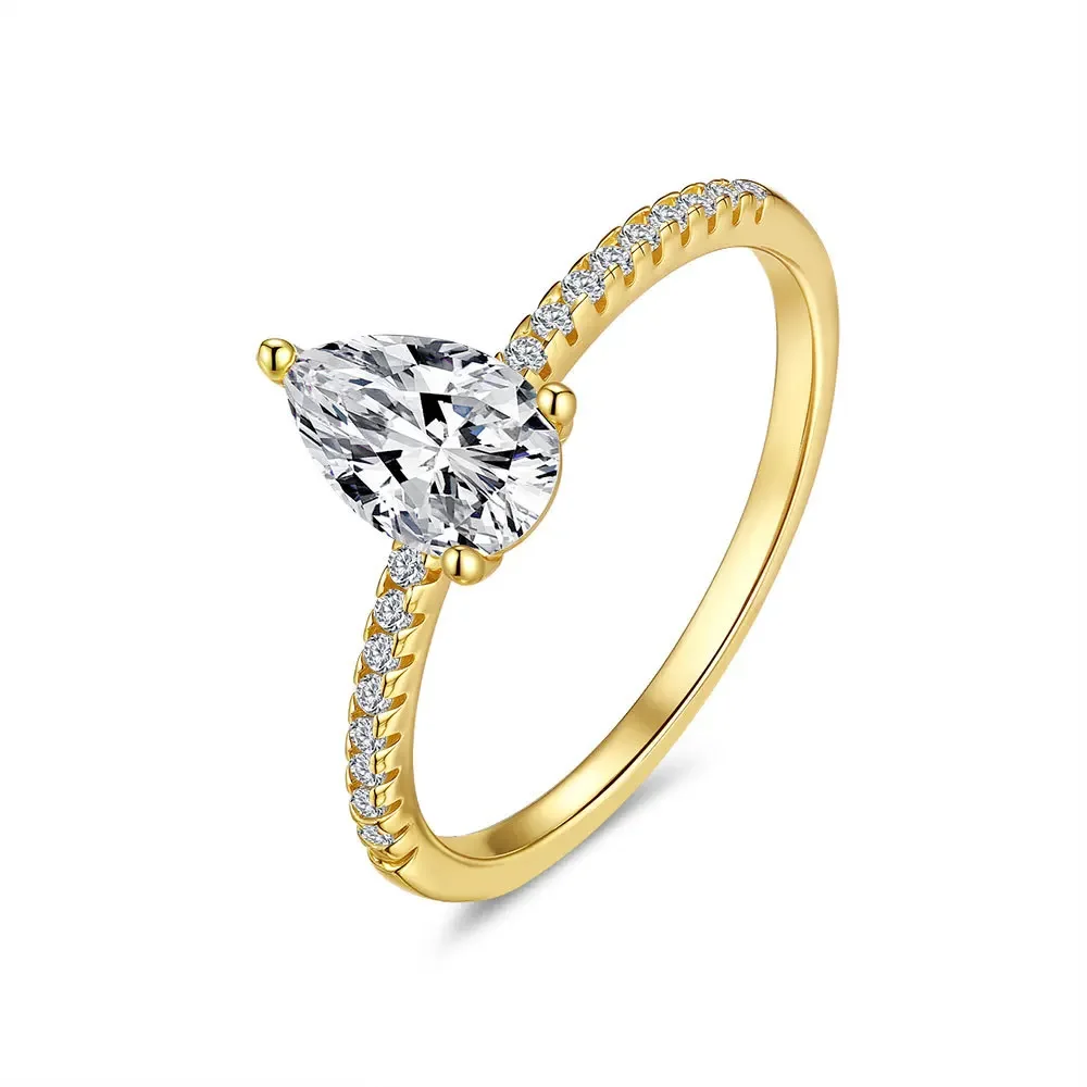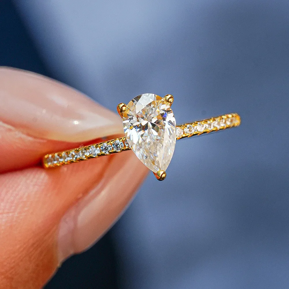 Luxury 100% Real 18k Gold Ring Women's Drops Set Ring Pear-Shaped Moissanite Diamond Ring