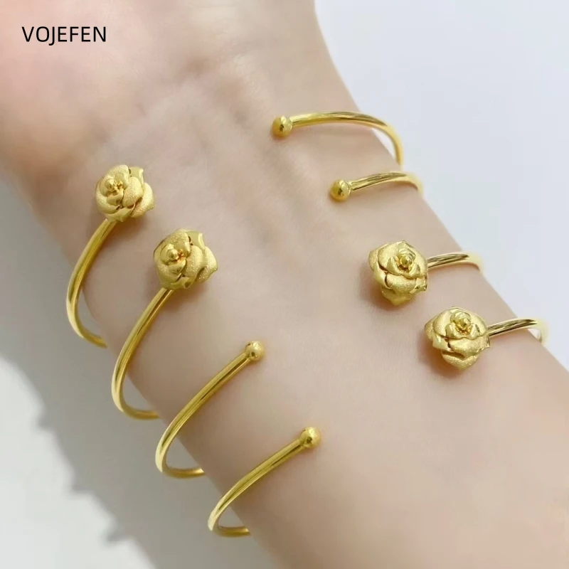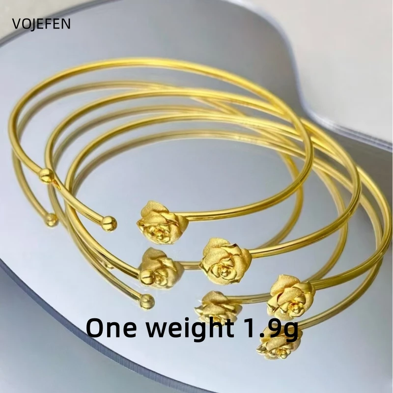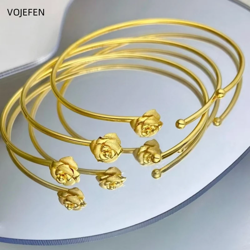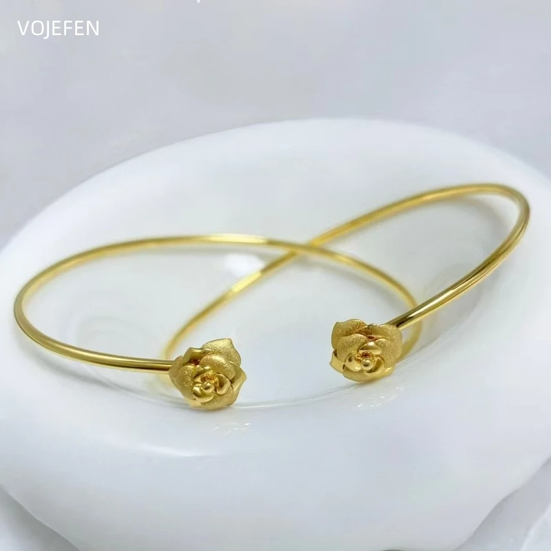 VOJEFEN 18K Gold Rose Bangles Bracelets Au750 Pure Gold Jewelry Original Luxury Designer New In Stretch Gold Bangle Jewellery
